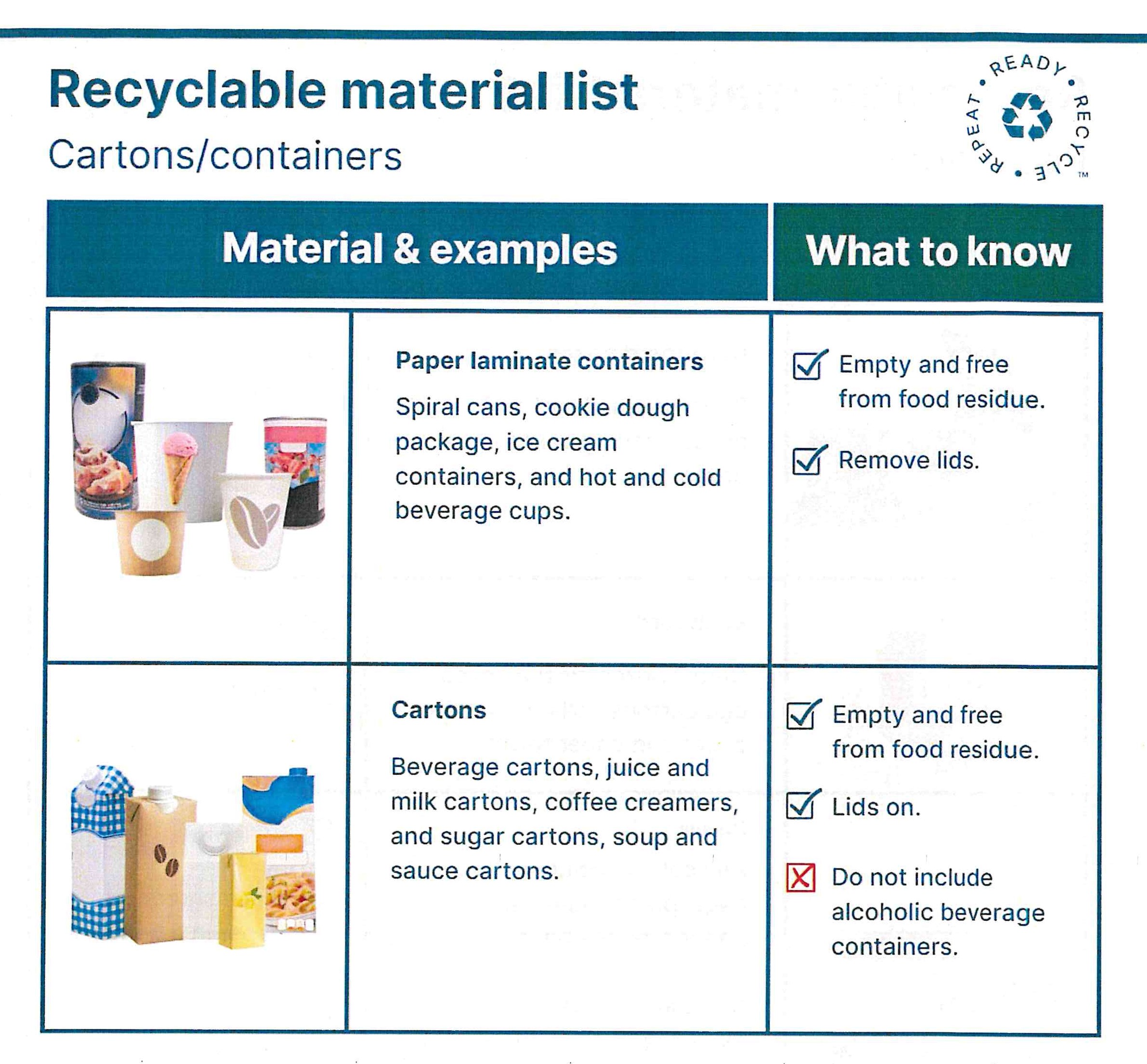 The following is a list of ACCEPTABLE and NON-ACCEPTABLE recyclable materials: