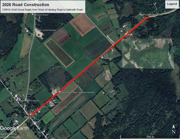 Lanark County will be hosting a Public Information Centre (PIC) regarding the upcoming rehabilitation of County Road 16 (Wolf Grove Road). The Public Information Centre (PIC) will be held at the Middleville Community Hall from 6 to 7 p.m. on Tuesday, Jan. 6th, 2026.